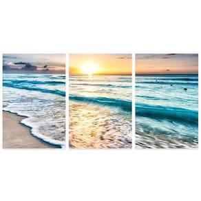Trio de quadros decorativos canvas partido Pôr do Sol na praia MidiaPopArte