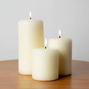 Trio de Velas Médio A vela é um item indispensável na decoração: ilumina, aquece, traz requinte e aconchego ao ambiente. Não possui aroma, perfeita para ser usada durante as refeições, pois não interferem nos aromas dos alimentos. Sugestão de uso: Pode ser usada na sala, quarto, banheiro, lavabo e varandas. Cor: Marfim off white Tempo de queima aproximado: 48 horas Composição: Parafina, pavio de algodão e acabamento com banho de cera. Tamanho: 6,5x7, 6,5x9 e 6,5x14cm Peso: 210g, 260g e 440g Marca: Digon Store Ean: 7905749299445