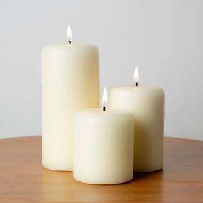Trio de Velas Médio A vela é um item indispensável na decoração: ilumina, aquece, traz requinte e aconchego ao ambiente. Não possui aroma, perfeita para ser Utilizado durante as refeições, pois não interferem nos aromas dos alimentos. Sugestão de uso: Pode ser Utilizado na sala, quarto, banheiro, lavabo e varandas. Cor: Marfim off white Tempo de queima aproximado: 48 horas Composição: Parafina, pavio de algodão e acabamento com banho de cera. Tamanho: 6,5x7, 6,5x9 e 6,5x14cm Peso: 210g, 260g e 440g Marca: Não Informado