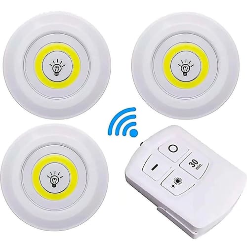 Trio Luminária Led Spot Portátil Sem Fio + Controle Remoto Luminária spot de led sem fio com tecnologia e comandos manual ou por controle remoto Perfeito para colocar em ambientes residenciais, comerciais como cozinha, armário, balcão, prateleira, garagem, porão ou locais escuros semelhantes, onde você pode precisar de alguma iluminação forte por alguns minutos de vez em quando. Controle de 2 vias: O controle remoto IR permite que você ajuste o brilho em 2 níveis e controle de tempo para desligar a luz em 30 minutos sem fio a uma distância de até 4 metros. Você também pode ligar / desligar a luz do disco, tocando no na lente das luzes. Instalação Fácil: Use o adesivo de dupla face para fixar a luz do disco em qualquer lugar que você queira iluminar. Bateria operada: Alimentado por pilhas AAA não incluídas para instalação sem fio. Especificações: - LED: LED de 5W COB - Brilho: 150 Lumens - Montagem: Fita 3M Tape Stick on - Tipo de bateria: 3 pilhas AAA não inclusas - Tipo de bateria de controle remoto: 2 pilhas AAA não inclusas - Tipos de acendimento: toque manual ou controle remoto - Distância de controle: até 4 metros - Dimensão lâmpada: 9 x 7 x 2.1 cm - Dimensão controle: 8 x 5.9 x 1.5 cm - Peso: 107g Itens inclusos: 03 Lâmpada LED 01 Controle remoto Marca: Não Informado Ean: 7904991984451
