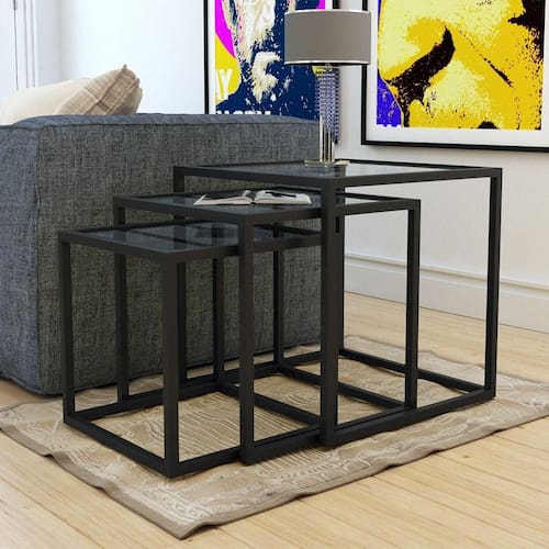 TRIO MESA LATERAL ISABELA PRETAPor que a Mesa Lateral Trio Isabela?Quer mais modernidade em sua casa?! A Mesa Lateral Trio Isabela é ótima para deixar o seu lar com um toque arrojado, com aquele encanto que os móveis contemporâneos tanto causam em nós! Dona de um visual diferenciado, ela é confeccionada com materiais de qualidade, o que garante maior resistência e a torna ainda mais especial. Não acha que ficaria linda com um vasinho de flores em cima? Aproveite! ;)Cor: PretoConteúdo da Embalagem: 3 Mesas LateraisModelo: IsabelaMaterial: Aço com Pintura E-Pox/Vidro IncolorDescrição do Tamanho: Altura: 45 cm Largura: 45 cm Profundidade: 45 cm Altura: 40 cm Largura: 40 cm Profundidade: 40 cm Altura: 35 cm Largura: 35 cm Profundidade: 35 cmFormato: QuadradaProduto precisa de Montagem?:NãoTrio Mesa Lateral Isabela Preta