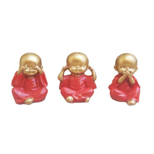 Conjunto com 3 Budas Monges Crianças, Cego Surdo e Mudo, na cor Vermelho e Dourado, em resina de alta qualidade. CARACTERÍSTICAS Altura : 5,3 cm. Comprimento : 4,1 cm. Profundidade : 3,7 cm. Peso unitário aproximado: 54 g Produto: 100% resina de alta qualidade. Por ser um produto semi artesanal, pode haver alteração nos tons das cores. Conteúdo da embalagem : 1 trio de Budas Monges Vermelho e Dourado Marca: Mahalo Artesanato