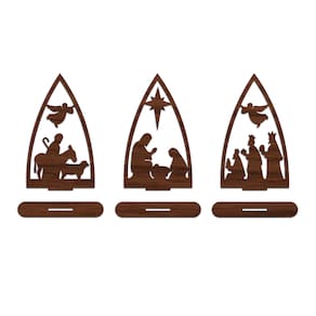 Trio Presépio Natal 9cmx15cm - Cria Arte Laser madeira escuro -