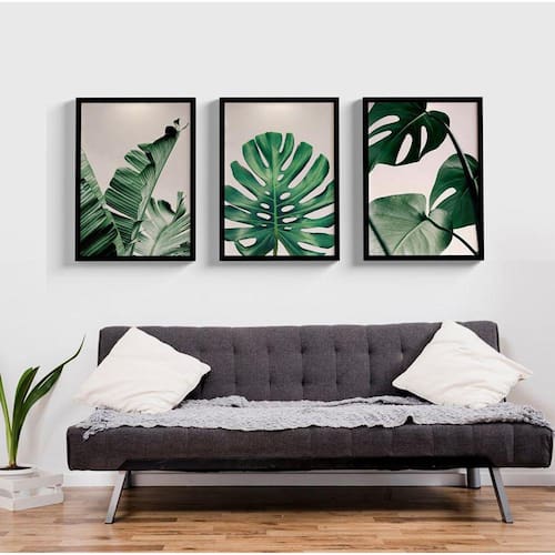 Trio Quadros Decoração Sala Folhas Costela De Adão NaturezaTrio Quadros Decorativos Quadros Decorativos com Moldura Quadros em MDF 3mm com moldura em madeira com 2cm de largura e 1cm de espessura.Opção de moldura preto. Especificações:- Medida cada quadro 40x60cm- Profundidade de 1cm- Moldura em Madeira de reflorestamento 100% madeira - Fundo em MDF 3mm com aplicação de adesivo impresso.Não acompanha vidro.