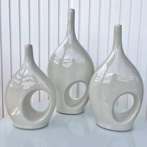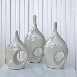 Decoração sala estante rack trio vaso ornamento vazado estilo garrafa de cerâmica na cor bege/areia 3 tamanhos diferentes enfeite de mesa para planta artificial. Uma ótima opção para compor a decoração do seu espaço com tons sóbrios e sofisticados. Que tal dar uma repaginada na decoração da sua casa, local de trabalho ou qualquer outro lugar que desejar, com muito estilo e bom gosto com esse lindo trio decorativo moderno, criando um ambiente sofisticado e elegante. Nova tendência na decoração contemporânea, produzidos em cerâmica, podem ser utilizados em ambientes internos ou externos ressaltando a beleza e harmonia na sua casa. Especificações: Cor Predominante: Bege. Material dos vasos: Cerâmica. Dimensões aproximadas: Dimensões do vaso pequeno: altura 24,5cm x largura 15,8cm x profundidade 7,5cm Dimensões do vaso médio: altura 32cm x largura 16,4cm x profundidade 8,8cm Dimensões do vaso grande: altura 38cm x largura 17,5cm x profundidade 9,5cm