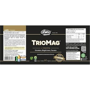Triomag Unilife 60 Cápsulas Suplemento composto por quatro tipos de magnésio e L-treonina. Triomag Unilife 60 Cápsulas é um suplemento alimentar desenvolvido com uma combinação de quatro tipos de magnésio e L-treonina, oferecendo uma fórmula inovadora para o dia a dia. Óxido de Magnésio: É um componente essencial que contribui para diversas funções no organismo, incluindo energia e bem-estar geral. L-treonina: Um aminoácido importante, desempenha um papel fundamental em atividades como a absorção de nutrientes e a manutenção do equilíbrio corporal. Dimagnésio Malato: Destaca-se por conter ácido málico, que está associado ao suporte energético. Magnésio Bisglicinato: É conhecido por suas propriedades relacionadas ao suporte do sistema nervoso e ao desempenho mental. Taurato de Magnésio: Combina magnésio e taurina, proporcionando benefícios complementares. Informações adicionais: Livre de lactose Não contém glúten Registro: Produto autorizado para comercialização em todo o território nacional através do anexo I da RDC 240/2018 da ANVISA. AFE do MS 6.02234-1. Marca: Não Informado