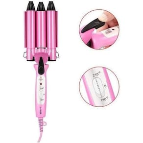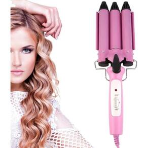 Triondas Ondulador de Cabelo Triplo de Cachos 25mm Bivolt Modelador de cabelo, triplo, com ferros modeladores. Tamanho 25mm - Rosa.
