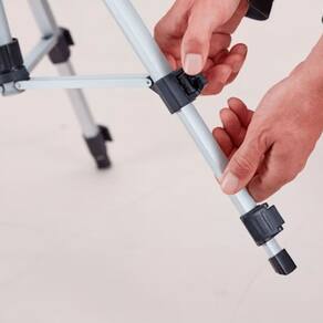Este Tripé 1/4" Telescópico possui duas bolhas de nivelação horizontais integradas para garantir o alinhamento perfeito. Sua coluna central com cremalheira e manivela facilita o ajuste fino de altura. O sistema de clip bloqueia os pés de forma segura, garantindo estabilidade.
