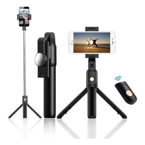 Tripé Celular Selfie Vertical Horizontal Bluetooth 60 Tripé Celular de Selfie com Inclinação e Controle Remoto 60 centimetros O de selfie com de tripé sem fio possui um controle remoto para tirar fotos ao invés de clicar no aplicativo da câmera. É compatível com Android e IOS apenas para aparelhos Android configure a função tecla de volume como captura na configuração do aplicativo da câmera para que o de selfie funcione corretamente . Fácil de transportar por ser leve e compacto Haste em aço inoxidável Extensível até 6 níveis ângulo da câmera ajustável. Comporta celulares de até 8 centímetros de largura, para ser Utilizado na horizontal e na vertical. Projetado para tirar selfie com um toque. Acompanha selfie tripé extensível em até 60 centímetros. Controle acompanha bateria Marca: Não Informado Ean: 7892436551385