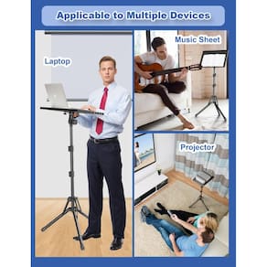 Tripé para projetor, suporte para laptop com bandeja de mouse, tripé de laptop de altura ajustável de 66 a 56 cm, tripé dobrável para projetor com bolsa de transporte, suporte de pódio portátil para escritório, casa, palco, DJ - Capacidade de carga ultra forte: o suporte de projetor recentemente atualizado da GSOW, com seu design exclusivo de orifício de bloqueio e pernas antidobráveis, pode suportar 25 kg ou mais, e é adequado não apenas para laptops e projetores, mas também para equipamentos pesados de DJ e outros equipamentos grandes - Altura ajustável: este tripé de projetor tem orifícios de bloqueio de três posições, haste de extensão e haste de elevação, você pode ajustar a altura de 66 a 142 cm de acordo com suas necessidades, para que você possa sentar e ficar em pé na altura mais confortável, perfeito para várias cenas internas e externas - Resistente e estável: o tripé para laptop é feito de materiais de liga de alumínio resistentes e duráveis. O design de barras de fixação duplas e orifícios de bloqueio oferece grande estabilidade e garante suporte completo do dispositivo, para que este suporte de projetor não arrisque sua propriedade de cair ou escorregar, mesmo atingindo a altura máxima, os postes e tripés espessos com uma perna maior manterão uma boa estabilidade - Suporte de tripé multifuncional: tripé de suporte de projetor resistente, o tamanho da bandeja é de 40,6 cm x 28 cm e tem bordas elevadas de 1,3 cm para segurança, também equipado com uma bandeja de mouse, suporta várias especificações de equipamentos, como laptops, projetores, gravadores, notas musicais, equipamentos de DJ de mídia de som, suporte de pódio portátil etc - Bolsa dobrável e portátil: o tripé do projetor possui um design compacto e de tamanho pequeno. Vem com uma bolsa de transporte e sua moldura dobrável o torna conveniente para armazenamento e transporte. O tripé de projeção portátil pode ser configurado em minutos e é perfeito para uso em casa, estúdio, palco, filmes internos e externos - Excelente atendimento ao cliente: Se você encontrar algum problema, sinta-se à vontade para entrar em contato conosco por e-mail e responderemos dentro de 12 horas