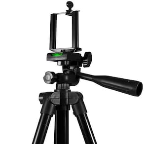 - Nível para alinhamento - Manivela para aumenta altura - Cabeça com nivelamento em 90º e giro em 180º - Nivelador para nivelamento em 90º e giro em 189º com trava - Montagem e desmontagem rápida - Sacolinha para transporte