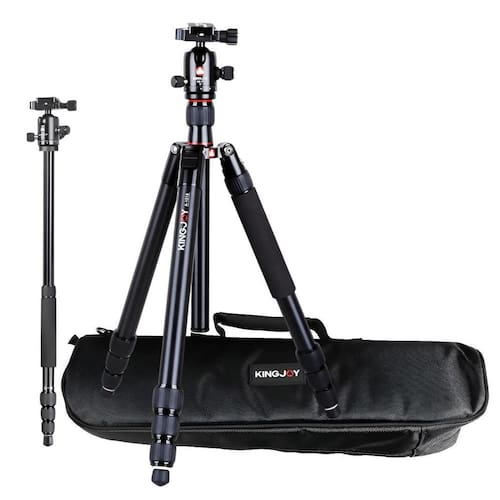 Este tripé e monopé Kingjoy A-1318 com Cabeça Ball Head Q20 feito de Liga de Alumínio suporta equipamentos até 18Kg, possuo altura máxima de 1.65m, mínima de 27cm, é um modelo sólido e robusto com todas as funções que você necessita para fazer um excelente trabalho seja ele amador ou profissional. A principal característica deste Tripé Kingjoy é a estrutura de fixação de coluna central, que é construído com sistema de bloqueio duplo para maior estabilidade. Com o benefício adicional de uma perna desmontável que pode ser transformado em um Monopé compacto. uma das pernas pode ser removida e conectada à coluna central para criar um monopé para maior versatilidade. as pernas são feitas de alumínio forjado para minimizar o peso sem comprometer a resistência. Para aumentar a estabilidade, a coluna central tem um gancho de contrapeso na parte inferior para que você possa pendurar um peso estabilizador, como uma bolsa pesada. pés de borracha e pontas de aço inoxidável permitem que você use o suporte em uma variedade de superfícies, como grama, gelo ou pisos de madeira e ladrilho.A Cabeça Esférica Ball Head Kingjoy Q20 Profissional Damping para até 7kg inclusa, possui com uma plataforma de liberação rápida de nível de bolha com uma trava confiável para evitar que a câmera caia. Permite girar a câmera em 360 graus para fotografar panoramas. Seu Plate na parte superior tem rosca Universal de 1/4 para Câmeras, Filmadoras, Telescópio, Suportes de SmartPhones entre outros acessórios de Estúdio Fotográfico e de Filmagem.Esta Cabeça Esférica Ball Head Kingjoy Q20 possui travas separadas para sua e pan, e possui plate de liberação rápida estilo Acar Swiss. As marcas de grau permitem que você mude rapidamente sua Câmera ou Equipamento para a posição retrato, e um nivelador bolha integrado ajuda a manter o alinhamento horizontal, assim tendo máxima precisão em imagens na horizontal e vertical.Principais Características: Bolsa de transporte inclusa Tamanho compacto, leve e fácil de transportar Altura máxima de 1.6m, mínima de 24cm Capacidade para suportar equipamentos de até 18kg pés de borracha e pontas de aço inoxidável Cabeça Esférica Ball Head com liberação rápida e boa estabilidade. Coluna central e uma perna removível para ser como monopé nivelador bolha e boa estabilidade, Bolsa de transporte inclusa.Obs.: O Tripé pode suportar até 10kg quando sem cabeça, o parafuso superior pode ser invertido de 3/8 para 1/4 para conectar seu equipamento. Marca: Não Informado Ean: 0750727806446