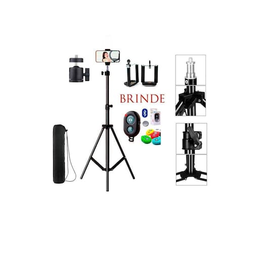 Altura Ajustável de 2,1 Metros: O design expansível permite que você alcance alturas impressionantes, proporcionando a perspectiva perfeita para suas fotos e vídeos.