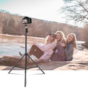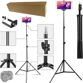 tripé Robusto de alta qualidade, possui molas internas para amortecimento, braçadeiras reforçadas em nylon, altura de 2,10 mts, abertura dos pés de 88 cm promovendo boa estabilidade, pino 5/8 com rosca 1/4 para usar diversos tipos de equipamentos.Pintura preta, tornando – o mais discreto no ambiente de cine & foto.Reforçado, chegando a suportar 6 kg , pode ser usado com diversos equipamentos de iluminação.(acompanha Suporte Para Celular Universal).