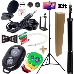 Tripé profissional 2,10m pedestal suporte adaptador celular + microfone de lapela controle selfie makeup vídeos youtuber Tripé 2,10m câmera celular pedestal + controle bluetooth + microfone lapela acompanha controle disparador bluetooth Tripé robusto de alta qualidade, possui molas internas para amortecimento, braçadeiras reforçadas em nylon, altura de 2,10 mts, abertura dos pés de 88 cm promovendo boa estabilidade, pino 5/8 com rosca 1/4 para usar diversos tipos de equipamentos. Pintura preta, tornando - o mais discreto no ambiente de cine & foto. Reforçado, chegando a suportar 6 kg , pode ser com diversos equipamentos de iluminação. acompanha suporte para celular universal . Além disso este tripé é um modelo muito recomendado para utilização junto a equipamentos fotográficos e iluminação, uma vez que possui uma estrutura resistente com composta por materiais de alumínio e partes plásticas, conseguindo alcançar uma altura máxima de 2,10 metros e mínima de 68cm quando totalmente fechado, pesando somente cerca de 780 gramas, sendo portanto, carregado com muita facilidade e praticidade. O tripé de iluminação tpi-200 ainda possui 3 seções e 3 travas, que proporcionam ao usuário uma regulagem na altura, de forma que possibilite ao mesmo criar diversos modos de uso, conforme a necessidade de operação em cada um de seus trabalhos. O adaptador permite que o microfone de lapela seja utilizado Em celulares ou em aparelhos que não tenham entrada para plug p2 de 3 vias comprimento do cabo do microfone de lapela: 1 metro e meio. Especificaçoes do microfone: - inpedância: 2,2 k ohm - - sensibilidade: - 52db 5db - - comprimento do cabo: 1 m - - faixa de frequência: 30 hz 1500 hz - Controle remoto bluetooth celular É um produto que foi desenvolvido para facilitar a vida dos usuários de smartphones que adoram tirar aquela selfie sozinho ou com a galera. Com ele, você pode facilmente tirar fotos ou fazer vídeos sem precisar tocar no seu aparelho Atenção a cor do controle bluetooth é escolhida aleatoriamente, conforme a disponibilidade em O kit contém: 1 tripé de até 2,10m de alcance 1 suporte para celular 1 microfone de lapela 1 adaptador para fone e microfone 1 controle bluetooth