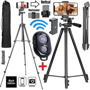 Tripé profissional alumínio para câmera suporte de celular controle bluetooth bolsa gravação vídeo foto selfie youtuber atenção só compre produtos com lacrado em sua embalagem . tripé telescópico em alumínio preto com ajuste de altura profissional já vai com suporte para smartphone e controle bluetooth + bolsa para transporte Faça fotos e vídeos incríveis Itens inclusos: 1 tripé profissional black 1,20m 1 suporte para celular 1 controle bluetooth Utilize o tripé para tirar suas fotos ou faça seus vídeos sem trepidar e com uma ótima qualidade e no ângulo que você quiser. Leve e prático para ser transportado para onde você quiser. Possui ajuste de ângulo, braço para rotação da base e nivelador de bolha, para enquadramento e alinhamento perfeito da imagem, além de altura ajustável com travas e pés emborrachados antiderrapantes. Por ser dobrável e muito leve é ideal para transporte. Acompanha bolsa com alça e adaptador para celular com duas posições de uso horizontal e vertical . - altura máxima : 120cm; - altura mínima: 45 cm; - 360 na horizontal e 90 na vertical; - suporta peso máx: 2 kg; - pernas em alumínio - material: alumínio e abs - cor: preto; - altura ajustável com travas; - pés emborrachados antiderrapantes; - braço para rotação da base da câmera; - haste central; - bolsa para transporte incluso; - peso líquido: 550g. Suporte adaptador para colocar o celular. Ideal para uso com mini tripé, pau de selfie ou qualquer tripé com sistema de rosca 1/4. Compatível com aparelhos de até 8,5 cm de largura. Controle remoto bluetooth shutter Alcance do bluetooth: até 5 metros Compatibilidade: android a partir da versão 4.22 ou superior / ios a partir da versão 6.0 ou superior Atenção: Não acompanha celular ou dispositivos. lacrado em sua embalagem . Postamos em até 24 horas úteis. Marca: Não Informado