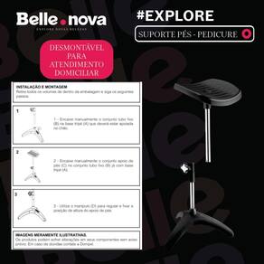 Fabricado em polipropileno de grande durabilidade com estrutura em aço cromado, o tripé Fix, possui regulador de altura e é totalmente desmontável para facilitar o trabalho da pedicure.