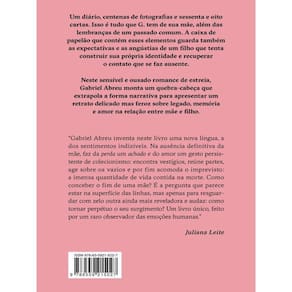 Um mosaico que extrapola a forma narrativa para construir um retrato delicado mas feroz sobre legado, memória e amor na relação entre mãe e filho. Um diário, centenas de fotografias e sessenta e oito cartas é tudo que G. tem de sua mãe, além das lembranças de um passado comum. A caixa de papelão que contém todos esses elementos guarda também as expectativas e as angústias de um filho que tenta construir sua própria identidade e Um diário, centenas de fotografias e sessenta e oito cartas é tudo que G. tem de sua mãe, além das lembranças de um passado comum. A caixa de recuperar o contato que se faz ausente. Partindo em busca dessa mulher -- de quem ela foi antes da maternidade, da mãe que nasceu com ele, dos mistérios da individualidade --, G. revira bulas de remédio, diagnósticos médicos, mapas astrais, redige cartas, e-mails, questiona a si mesmo. E conclui: "Escrevo e envio esta carta para você para tentar reencontrar, em minha própria voz, a tua." Neste sensível e ousado romance de estreia, Gabriel Abreu monta um emocionante quebra-cabeças de registros, afetos e lembranças que apenas um filho, em vias de perder a mãe, pode ter. Ean: 9786559215027