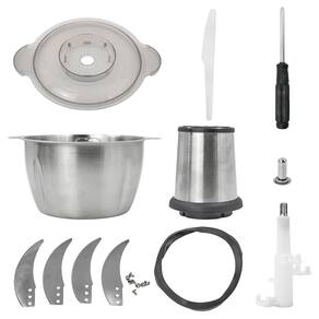 Triturador de alimentos elétrico com motor de 850W, capacidade de 2 litros, 4 lâminas em aço inoxidável, duas velocidades e base emborrachada.Porta-fio