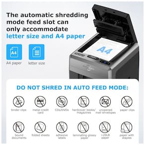 Com uma capacidade massiva de 300 folhas automático, o Triturador de Papel BONSEN permite triturar pilhas enormes de até 300 folhas automaticamente. Além disso, utilize a abertura manual para 12 folhas, grampos, cartões de crédito e CDs/DVDs com facilidade. Projetado para uso exigente em escritórios, oferecendo alta segurança com fragmentação microcorte que mede apenas 4 x 12 mm. Funciona em silêncio, com 58 dB, ideal para ambientes compartilhados. Conta com uma lixeira grande de 30,7 litros com modo de economia de energia automático após 10 minutos de inatividade. Móvel e fácil de transportar com rodízios.