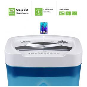 Corte transversal com capacidade para 12 folhas destrói cartões de crédito e pequenos clipes de papel. Destrói papel, cartões de crédito em pedaços pequenos 4, x 39,68 milímetros, nível de segurança P 3. Tempo de execução contínua sem parar de 5 minutos reverso automático anti jam para limpar congestionamentos de papel. Sobrecarga e proteção térmica, interruptor de 4 modos auto, desvio, reverso. Cesta de lixo de 18 litros com luzes indicadoras de LED em espera, superaquecimento Marca: Não Informado