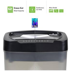 Corte transversal com capacidade para 12 folhas destrói cartões de crédito e pequenos clipes de papel.