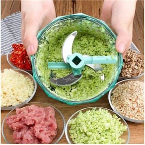 O triturador e processador de alimentos manual funciona de maneira bem simples: Basta inserir o alimento no recipiente de acrílico, fecha-lo, puxar a corda retrátil cerca de 5 vezes e pronto, o alimento estará processado. A espessura do alimento pode ser controlada facilmente através do número de vezes em que a corda é puxada. Quanto mais vezes, mais processado será o alimento.