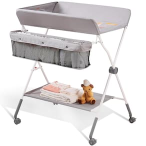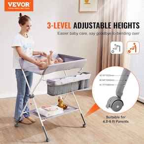 VEVOR Trocador de fraldas, trocador de fraldas dobrável com rodas bloqueáveis, trocador portátil de 3 níveis de alturas ajustáveis, com cesta de armazenamento e suportes suspensos para recém-nascidos - Altura ajustável: nosso trocador apresenta um design de altura ajustável de 3 níveis, adequado para pais de diferentes alturas. Evita dores musculares causadas por se curvar ou ajoelhar, proporcionando a você uma experiência mais relaxada e confortável durante o cuidado do bebê. - Design dobrável portátil: o trocador de bebê vem com um design dobrável rápido e 4 rodas universais silenciosas e traváveis, permitindo que você armazene e mova rapidamente. As bordas levantadas em todos os quatro lados da mesa fornecem proteção de segurança de 360°, garantindo que seu bebê esteja em um ambiente seguro. - Espaço de armazenamento espaçoso: nosso trocador portátil oferece amplo espaço de armazenamento para você armazenar fraldas, lenços, pó ou outros produtos de cuidado, facilitando o acesso aos itens manualmente. Não há necessidade de procurar itens, tornando o cuidado do bebê mais eficiente. - Material premium durável: o trocador dobrável é feito de materiais premium selecionados e é certificado pela CPC. O painel de tecido Oxford é à prova d'água, resistente ao desgaste e fácil de limpar, proporcionando a você uma melhor experiência. - Usos multifuncionais: este trocador dobrável não é apenas adequado para trocar fraldas e roupas, mas também atende a várias outras necessidades, como massagem, amamentação e muito mais. Isso oferece a você mais conveniência e uma solução abrangente para os pais durante a criação do seu bebê.