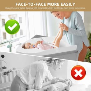 - Design ergonômico para mães: entendendo os desafios das trocas frequentes de fraldas, este trocador de bebês foi projetado com uma altura de 35 polegadas, permitindo que as mães troquem confortavelmente as fraldas ou roupas do bebê sem a necessidade de se curvar. Esse design inteligente facilita as tarefas diárias, ajudando a reduzir a tensão e tornando a vida mais conveniente para os novos pais.