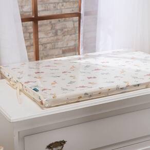 Perfeito para apoiar na cômoda fraldário e completar o espaço da troca de fraldas, esse produto é composto por duas peças: um trocador de espuma com capa de tecido e uma capa plástica protetora translúcida com acabamento em viés.