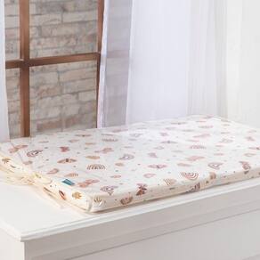 Perfeito para apoiar na cômoda fraldário e completar o espaço da troca de fraldas, esse produto é composto por duas peças: um trocador de espuma com capa de tecido e uma capa plástica protetora translúcida com acabamento em viés.