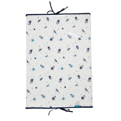 Perfeito para apoiar na cômoda fraldário e completar o espaço da troca de fraldas, esse produto é composto por duas peças: um trocador de espuma com capa de tecido e uma capa plástica protetora translúcida com acabamento em viés.