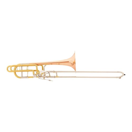 Especificações técnicas: - tipo: trombone baixo com 2 rotores - afinação: bb/f/eb/d - acabamento: laqueado brilhante - calibre: 14,2 mm - campana: 241 mm de diâmetro - tubos: interno em cromo-duro e externo laqueado - material dos encaixes: alpaca - bocal: michael 12c prateado