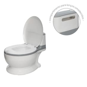 Botão com Som de Descarga: Estimula a criança e torna o treinamento no banheiro mais divertido.