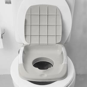 O Troninho Peppy Cinza é compatível com a maioria dos vasos sanitários comuns e possui alças de apoio para as mãos, garantindo que a criança se sinta segura e confiante ao utilizar o produto.