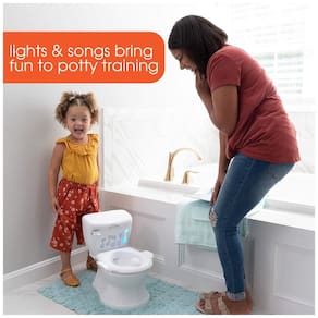 DESIGN REALISTA E DIVERTIDO O vaso sanitário infantil Summer My Size Potty Lights and Songs Transitions apresenta um design elegante de penico baseado em um banheiro adulto. As notas musicais alegres entretêm seu filho à medida que se acendem. PUXADOR DE TOILET INTERATIVO O puxador de banheiro interativo apresenta melodias divertidas e som de descarga que soa como a coisa real. Percorrendo seis melodias diferentes, as luzes coloridas piscam ao ritmo da música para recompensar o seu pequeno. POTTY TOPPER REMOVÍVEL O potty topper removível pode ser colocado no banheiro adulto, tornando a transição suave para o seu pequeno. COMPARTIMENTO DE LIMPEZA O compartimento de limpeza embutido em tamanho real na cadeira do penico mantém os lenços ao alcance do braço, promovendo hábitos saudáveis Marca: Não Informado