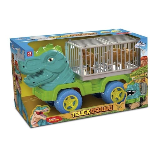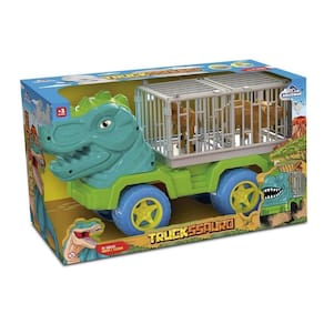 Neste kit fantástico acompanha: 1 caminhão de 42 cm de comprimento com 2 compartimentos individuais de jaula com abertura superior e mais dois dinossauros pra se divertir.