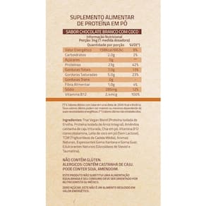 A combinação das proteínas de ervilha e do arroz com adição da amêndoa triturada e da chia em pó proporcionam uma cremosidade única. Tendo em vista a recorrente deficiência de vitamina b12 em dietas vegetarianas, o true vegan fornece 100% das necessidades diárias desta vitamina. Com baixo teor de sódio e carboidrato, a true vegan adoçada com edulcorantes naturais (estévia, taumatina e maltitol).