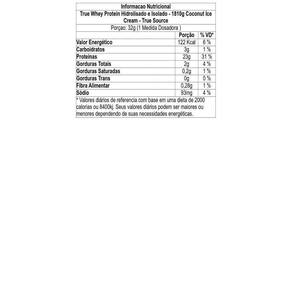 Descriçãoom formulação limpa, funcional e com ingredientes extraídos da natureza, o TrueWhey fornece 23g de proteína e 5,3g de BCAAs por dosador, importantes para o aumento significativo da massa muscular e para recuperação entre os treinos.Seus ingredientes abrangem a Proteína Hidrolisada do Soro do Leite Proteína Isoladado Soro do Leite, Peptídeos bioativos de colágeno Verisol, Amêndoas de castanha de caju em grãos e Triglicerídeos de Cadeia Média.Os peptídeos bioativos de colágeno Verisol têm ação comprovada sobre a melhora da beleza e saúde da pele. A amêndoa de castanha de caju contém flavonoides e gorduras boas para manutenção de uma boa saúde. E os TCMs atuam como fonte de energia.Basicamente são moléculas de gordura que, por serem médias e não longas em relação à quantidade de átomos em cada uma , são mais fáceis para o organismo quebrar e obter energia dali. Sendo metabolizados rapidamente, eles também têmpapel importante na baixa taxa de gordura corporal e aumento de massa magra.Como TomarO True Whey pode ser utilizado tanto como pós treino com objetivo de hipertrofia muscular, quanto para aumentar o aporte proteico diário com qualidade nutricional associada, tendo em vista os ingredientes funcionais que o compõem.Diluir 1 medidor em 150ml de água, podendo ser utilizado no pós treino ou outro momento do dia, conforme prescrição do nutricionista ou médico.IngredientesBlend True Whey Proteína Hidrolisada do soro do leite e proteína Isolada do soro do leite , Colágeno Hidrolisado Verisol, Amêndoas de castanha de caju em grãos, triglicerídeos de cadeia média MCT , leite de coco em pó, Sal marinho, Espessante Goma Xantana, Aromas Naturais, Edulcorantes Naturais Glicosídeos de Esteviol, taumatina e maltitol .ALÉRGICOS: CONTÉM DERIVADOS DO LEITE, CASTANHA DE CAJU E PODE CONTER SOJA, OVOS E AMENDOIM.PODE CONTER TRAÇOS DE LACTOSE.NÃO CONTÉM GLÚTEN.