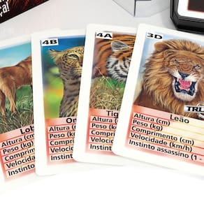 Super Trunfo traz 32 cartas traz fotos e informações de simpáticos gatinhos para uma disputa superdivertida!Você compara sua carta com a do outro jogador. Mas escolha bem a característica que vai utilizar a cada rodada, pois, se sua carta ganhar, você fica com a carta do outro jogador; se perder, ele fica com a sua! No final, vence quem ficar todas as cartas do jogo.A partir de 7 anosDimensões da embalagem: 15,2 x 10,0 x 2,0 cm