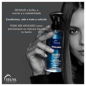Truss frizz zero 260ml Efeito instantâneo, praticidade e ação antifrizz em um tratamento disciplinante inovador. Desenvolvido para condicionar, hidratar, selar a cutícula capilar e devolver rapidamente a maciez, o brilho e a maleabilidade aos fios.