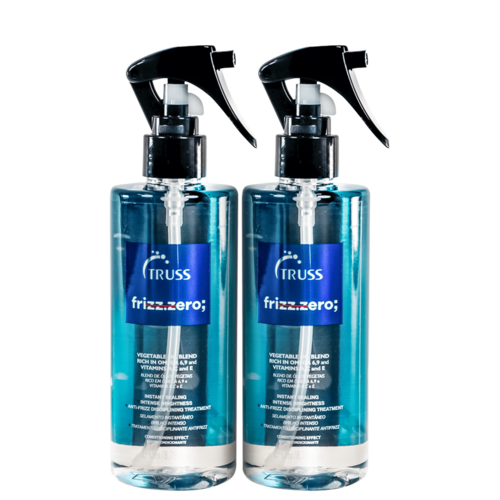 Kit com 2 condicionadores para cabelos equilibrados. Truss Frizz Zero Condicionador pode ser utilizado como pré-shampoo ou máscara líquida nas lavagens.