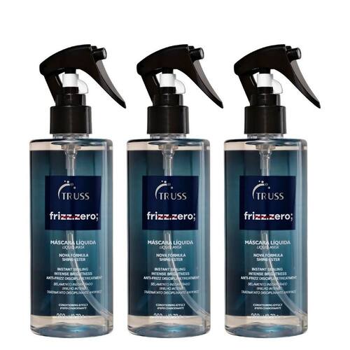 Truss frizz zero kit spray 3x260ml Efeito instantâneo, praticidade e ação antifrizz em um tratamento disciplinante inovador. Desenvolvido para condicionar, hidratar, selar a cutícula capilar e devolver rapidamente a maciez, o brilho e a maleabilidade aos fios. Contem 3 unidades truss frizz zero 260ml Marca: Não Informado