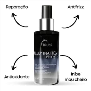 Benefícios Com o Truss Iluminatte Oil, você desfrutará de: Ação Antifrizz: Diga adeus ao frizz e tenha cabelos alinhados e com movimento. Nutrição Profunda: Fios hidratados e saudáveis, com uma aparência revitalizada. Proteção Térmica: Protege os cabelos dos danos causados pelo calor de secadores e chapinhas. Durabilidade: Efeito prolongado de brilho e suavidade, com fragrância que dura o dia todo.