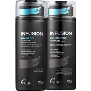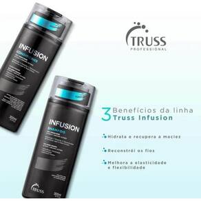 Contém: Truss Infusion - Shampoo 300ml: limpa, auxilia na reparação e fortalecimento dos fios para restaurar sua resistência, flexibilidade e saúde.