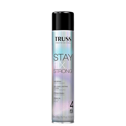 O Spray Fixador TRUSS Stay Fix Strong conta com Óleo de Argan altamente nutritivo e uma fórmula que protege do frizz. Oferece uma fixação intensa, que garante a resistência e a permanência do penteado por mais tempo.