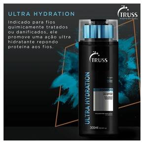 Truss ultra hydration shampoo restaura a hidratação e repara danos das áreas fragilizadas. Truss ultra hydration shampoo oferece todos os elementos que o cabelo precisa para resgatar a saúde após sofrer com o uso constante de ferramentas térmicas e frequentes processos químicos. Seus ingredientes tecnológicos agem desde o interior dos fios com a reposição de proteínas e resgate da elasticidade, principal fator antiquebra.