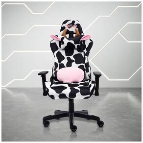 Diga às outras cadeiras de jogos para MOO ve fora do caminho, porque nossa nova cadeira de jogos TS85 Cow Print LUXX Series é exatamente o que você precisa para se destacar. Ele tem um estofamento suave e aveludado, assento de espuma de memória de alta qualidade, um apoio de cabeça de vaca com orelhas de pelúcia rosa e chifres marrons e um travesseiro lombar de dupla face Proporcionando o máximo conforto, estilo e desempenho, esta cadeira de jogos também possui apoios de braços ajustáveis em 2D, ajuste pneumático de altura do assento, mecanismo reclinável de até 150 graus e muito mais Esta cadeira pode suportar pesos de até 113 KG Marca: Não Informado