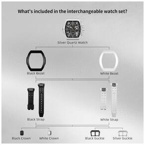 Descubra a versatilidade e elegância do relógio TSAR BOMBA Intercambiável para homens. Este relógio inovador permite que você personalize seu estilo com dois conjuntos completos de bezels, pulseiras e coroas intercambiáveis, oferecendo inúmeras combinações para você se destacar em qualquer ocasião, seja em eventos diários, semanais ou mensais. O design sofisticado em formato tonneau com uma ponte dupla arqueada proporciona conforto excepcional ao uso prolongado. A instalação dos componentes é simples: basta encaixar a coroa girando e pressionando firmemente para dentro, fixar a pulseira pressionando o botão traseiro e empurrando, e colocar o bezel pressionando firmemente nas posições indicadas. O kit inclui um relógio com movimento quartzo japonês preciso, 2 bezels, 2 pulseiras, 2 coroas e 2 fivelas para máxima personalização. O cristal de safira sintético altamente resistente evita riscos e a caixa de fluoroelastômero oferece resistência ao calor e durabilidade melhorada. Além disso, a pulseira feita do mesmo material é à prova de suor, respirável, confortável e durável. Este relógio é resistente à água até 100 metros, protegido contra suor, chuva e respingos, mas recomenda-se evitar o uso em água quente. Funcionalidades adicionais incluem calendário integrado e cronógrafo, tornando-o prático e divertido para o dia a dia. Um presente luxuoso para ocasiões especiais como Natal, Dia dos Pais, aniversários, casamentos e eventos casuais, o TSAR BOMBA é sinônimo de estilo e qualidade superior.
