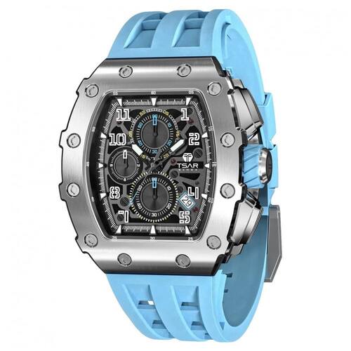 Descubra o requinte e a precisão do TSAR BOMBA, um relógio masculino projetado para quem valoriza estilo e funcionalidade. Perfeito para o dia a dia e ocasiões especiais, este relógio oferece resistência à água de até 50 metros, garantindo proteção contra respingos e imersões superficiais. Seu design tonneau luxuoso, combinado com uma pulseira de silicone confortável, traz um visual moderno e sofisticado, ideal para homens que buscam elegância sem abrir mão do conforto. Equipado com movimento de quartzo japonês, o TSAR BOMBA assegura máxima precisão e durabilidade. O mostrador em prata com detalhes azul claro destaca ainda mais a exclusividade deste modelo. Além disso, o cronógrafo integrado proporciona praticidade para medir intervalos de tempo com facilidade. Perfeito para presentear, este relógio é a combinação ideal entre tecnologia, estilo e robustez, tornando-se um acessório indispensável para homens dinâmicos e exigentes.